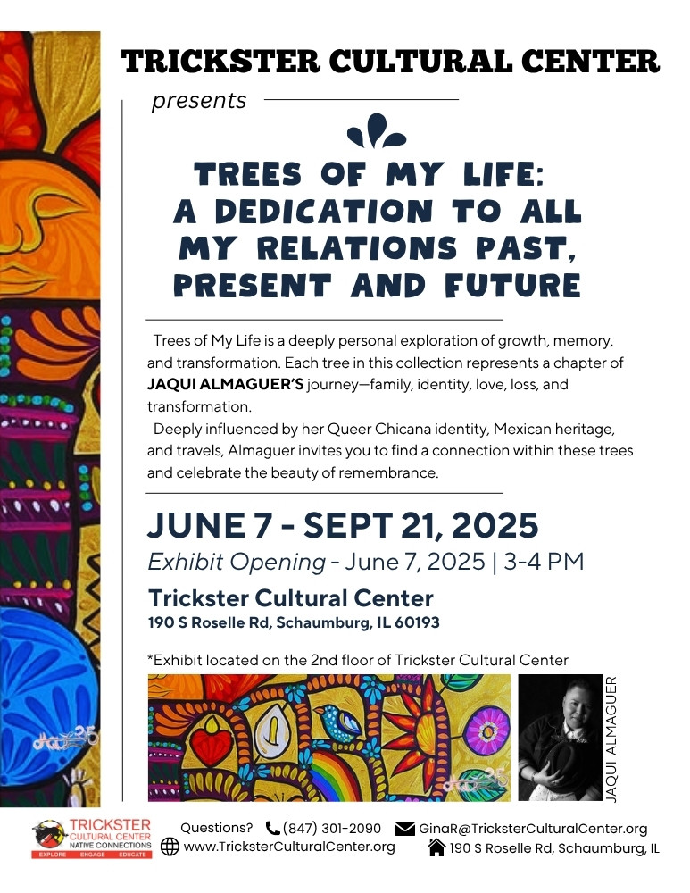 Trickster Cultural Center has made it a duty to acknowledge the traditional homelands we occupy. A map of the State of Illinois detail these cultures on the land that Tribal Nations have inhabited since time immemorial. We also use this space to thank everyone involved in the creation and implementation of the exhibit, including our sponsors.