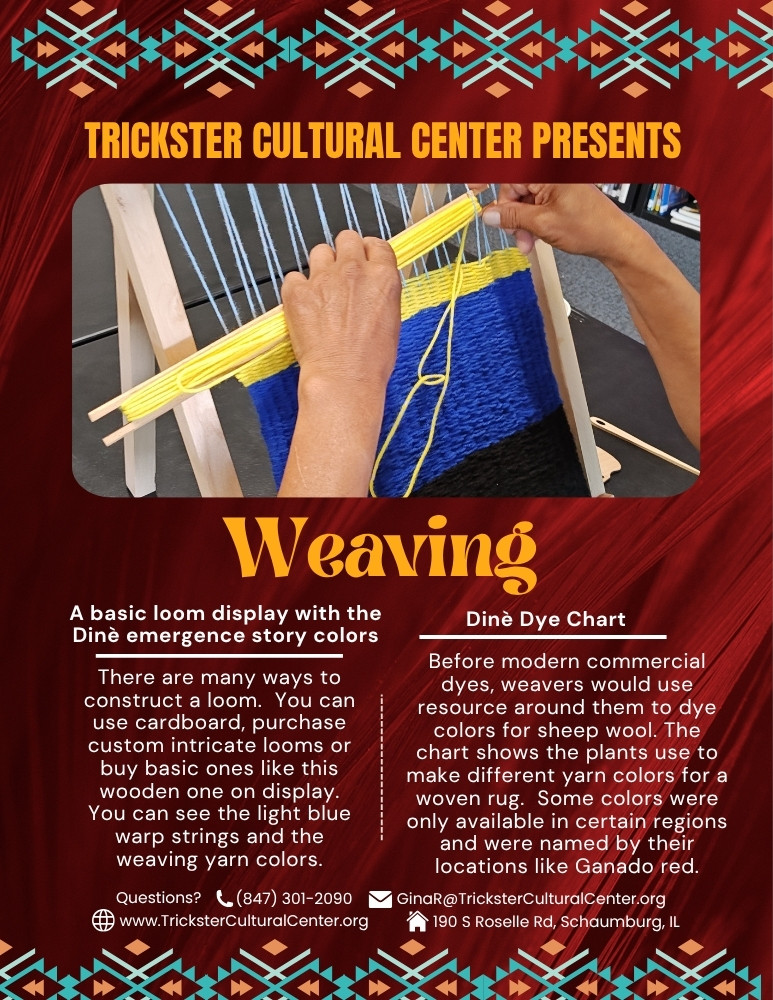 Explore Dinè cultural with our loom, weaving textile and dye chart.